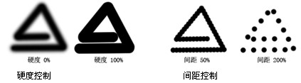 2) 硬度:設置畫筆邊緣的柔化程度,數值越高,畫筆邊緣越清晰,如圖
