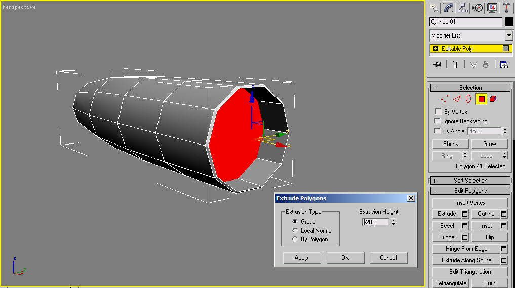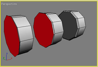 (3) 鋼筆中心的另外一側也是用同樣的方法制作出對稱的棱,第一組Extrude(擠壓)數值應該為1.5,輪廓數值為1.5,第二組直接Extrude(擠壓)數值為2,第三組Extrude(擠壓)數值為1.5,輪廓數值為-1.5,這樣一個簡單的鋼筆中心的對稱模型就制作完成。