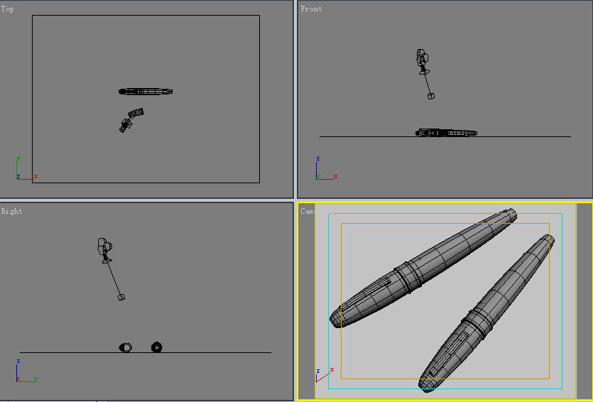 (1)打開上節課我們制作好的場景效果,如圖1-1所示。目前場景中并沒有任何特殊材質。按一下鍵盤上的F10鍵,打開渲染場景設置對話框,將目前的渲染器由掃描線設置為Vray渲染器,并且調節好場景的測試階段參數,這部分內容比較簡單,由讀者自行去完成。