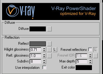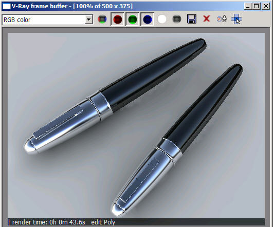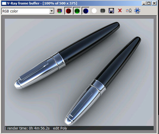 (2)按下鍵盤上的M鍵,打開材質編輯器,我們首先為鋼筆的上半部分設定材質效果,這是一個簡單的金屬材質,材質參數設定如圖1-2所示,金屬的材質非常簡單,我不用多說,大家只要調節顏色和反射就可以了,折射是沒有的。至于反射多少,根據你的感覺啦,這不一定的,我給的灰度值為242。