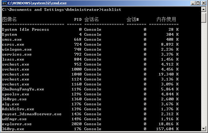 (1) 利用Tasklist命令查看當前系統進程的運行情況,如圖1-1所示。