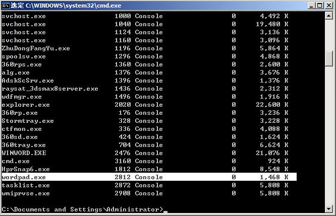 (4) 這里有一個非常重要的概念要介紹給大家認識,那就是進程的PID,它相當于每一個進程的“身份證號”,是每次在執行命令時由系統隨機指定分配的,這個寫字板程序所對應的進程PID為2812,我們一定要記住它。