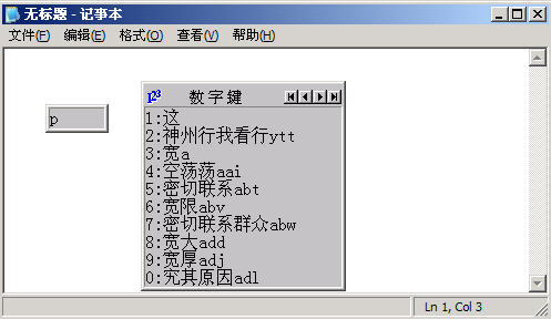 (6)此時電腦就已經認識你所輸入的詞組了,我們單擊“關閉”按鈕結束手工造詞的過程,在記事本中小試牛刀吧!我們輸入p鍵,看看,是不是已經出來詞組了呢,如圖1-5所示。此時完全不用輸完4個字母,只需要按下2鍵就可以了,真是太方便了。