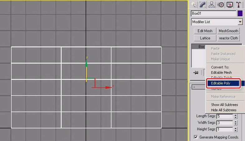 (2) 在Modify(修改)面板Box(長方體)物體命令上單擊鼠標的右鍵,然后在彈出的快捷菜單中選擇Convert to(轉換為)>Convert to Editable Poly(轉換為編輯多邊形)命令,將長方體轉化成Edit Poly的編輯模式,如圖4-2。