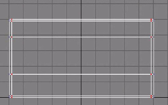 (3) 在Edit Poly (編輯多邊形)命令中選擇Vertex(點)編輯模式,選擇中間部分的兩排點,用縮放工具將兩排的點向兩邊縮放,目的是為了以后加入Mesh Smooth(網格光滑)命令讓邊緣看起來棱角方一些,如圖4-3。