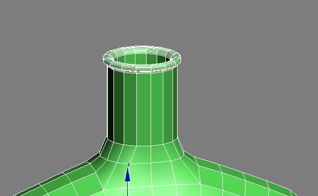 23. 選擇剛提出來的邊界,復(fù)制出一個(gè)來,并調(diào)節(jié)合適的位置,這樣做的目的是為了最后向瓶口圓形的地方過渡,這注意慢慢的來,多做幾條邊是為了過渡時(shí),不至于變形太夸張。最后看一下這個(gè)邊界由多少條邊界構(gòu)成,根據(jù)這個(gè)邊界創(chuàng)建成相同邊數(shù)的多邊形,把多個(gè)對(duì)象進(jìn)行結(jié)合,注意從下面往上一個(gè)一個(gè)的來進(jìn)行結(jié)合。如圖XOJP—24所示。