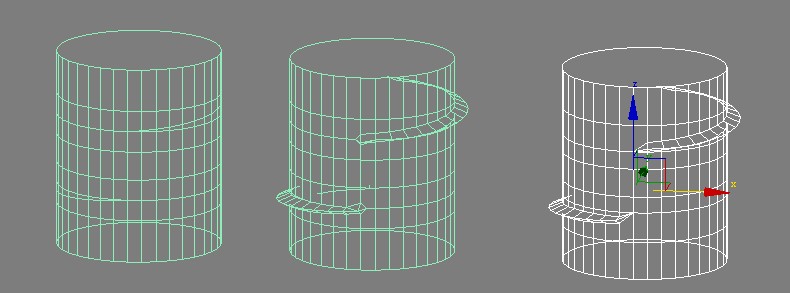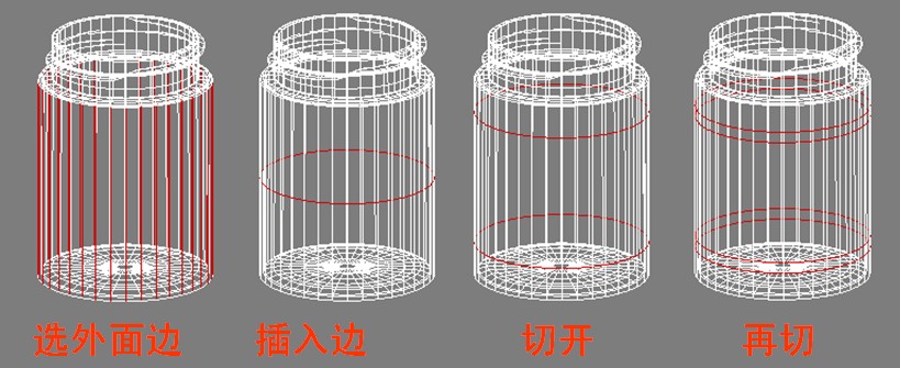 12. 瓶子的內部制作。到此我們已經把杯子的外部制作了出來,但此杯還是缺少內部的厚度,也許有人會想,使用編輯修改器【shell】(殼)命令,不妨可以試一下,原來我也曾這樣制作過,只是最后發現內部也會出現螺絲的痕跡,這里我對于厚度的思考是這樣的:對于三維模型來說,我們理解其厚度的方式是通過邊口處的。這里我對杯子的理解是內外兩層皮,我們可以通過復制一個出來,并把這個復制出來的對象選擇面后進行【Filp Normal】(翻轉面法線),這里只要把螺絲口部刪掉,補齊高度就可以了。其制作過程,如圖PT—12所示。