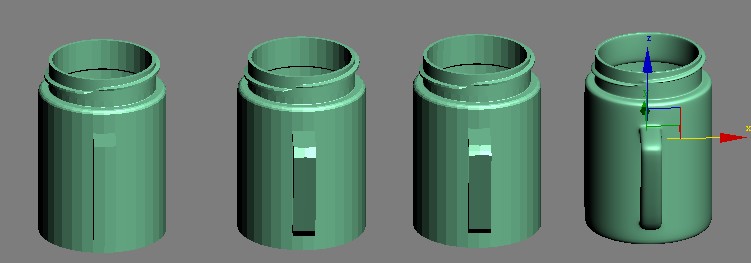 有的茶杯杯身是有造型的,有的茶杯杯身是光滑的,對于有造型,我們可以把造形和螺絲分開制作,然后采用精確對接的方式。對于沒有造形的,我們則可以從螺絲口制作作為開始的地方,然后在邊界上復制出來。