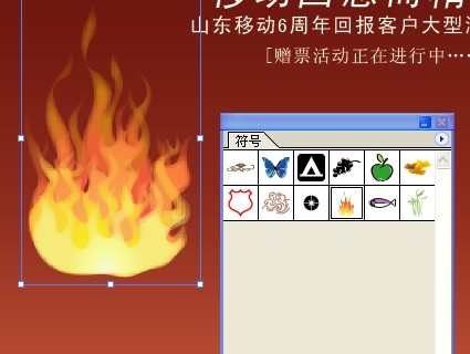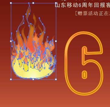 如圖示:在符號面板中將火符號拖到頁面中,執行編輯/擴展后,取消群組。寫上數字6,將6擴展后設置輪廓寬度顏色等。