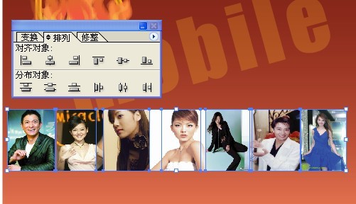 再輸入mobile詞并進行編輯放在下方做底印效果。第四步:將明星圖像導入進來并進行大小調整與排列: