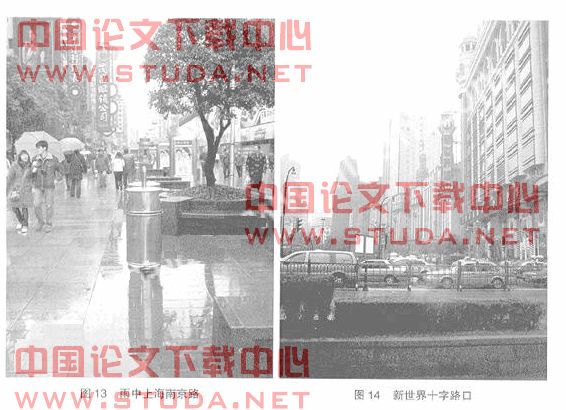 我漸漸了解了上海南京路這條繁華的商業(yè)街為何馳名遐邇、蜚聲海外。“購(gòu)物中心的形成和發(fā)展取決于交通的暢通程度:它們必須位于主要的交通干線附近。可是顧客從未從交通中受惠;因?yàn)樗麄冃枰察o、舒適和方便;他們需要從周?chē)貐^(qū)的步行道通往購(gòu)物中心。”“在各個(gè)地方對(duì)于都有步行區(qū),鋪成路面供人們集合或散步——散步場(chǎng)所、小廣場(chǎng)、步行街、有頂街道、小路的形狀,必須嚴(yán)格限制這些地方的大小,特別是鋪設(shè)路面的地段大小,以便使它們保持生氣。”“利用特別擁擠的邊緣地帶來(lái)增加行人密度和造成生氣蓬勃的感覺(jué)——臨街的咖啡座、袋形活動(dòng)場(chǎng)地、能坐的臺(tái)階、私家的沿街露臺(tái)、建筑物邊緣、臨街的窗戶、向街道開(kāi)敞的回廊。”[3]在南京路上的城市意向元素相互關(guān)聯(lián),各種風(fēng)格的建筑林立,而南京路上的景觀相得益彰,東望明珠塔、金茂大廈點(diǎn)綴的天際線,一系列連續(xù)的標(biāo)志物,每個(gè)細(xì)節(jié)都會(huì)讓人想到下一個(gè),每個(gè)廣場(chǎng)相互呼應(yīng),用一串石珠與交通似連還離。街道兩邊的建筑距離并不遠(yuǎn),“人群是壯觀的藝術(shù)。”[4]人群集聚的時(shí)候這個(gè)區(qū)域生氣勃勃,而雨天時(shí)亦不覺(jué)得死氣沉沉,這條歷盡滄桑的名街,在今天更加亮麗。