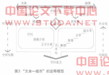 我們可以歸納出如圖3所示的文本詮釋框架模型。這是一個統括性的概念模型,從文本描述物到文本表現物的空間表現要素在這個模型框架中清晰可見。從描述物到表現物的文本“替代物”指涉了從表象到抽象的所有介質類型。其中,描述物的文本介質包括具體空間、圖像介質、文字介質等,即從空間形態到空間實踐的詮釋過程;表現物的文本介質包括雕塑、影像……文學等,即從空間化到社會化的文本認知過程。如果我們注意到這些文本介質的表現的內在機制,就會發現我們在參與、解讀、實踐空間的過程中是“有意無意”的通過對這些“文本介質”的“中介的”詮釋而激發創作情感的(圖3)。